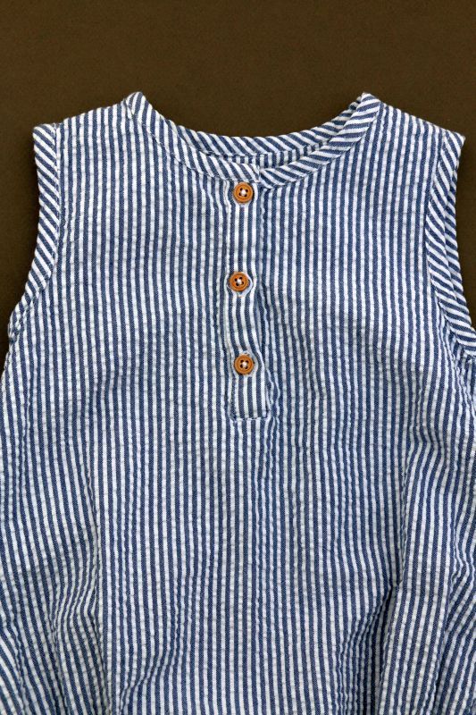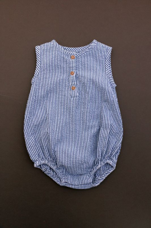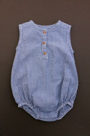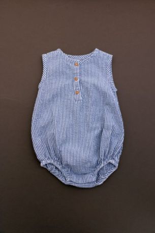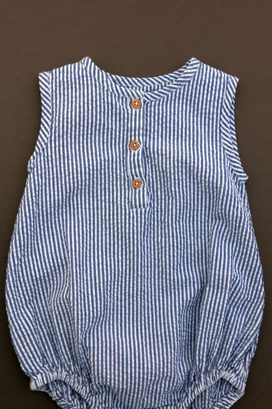 Combibloomer mixte bleu clair, pour bébé 3 mois, léger pour l'été, avec 3 boutons sur la poitrine et 3 pressions à l'entrejambe pour faciliter l'habillage et le change.