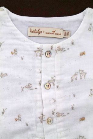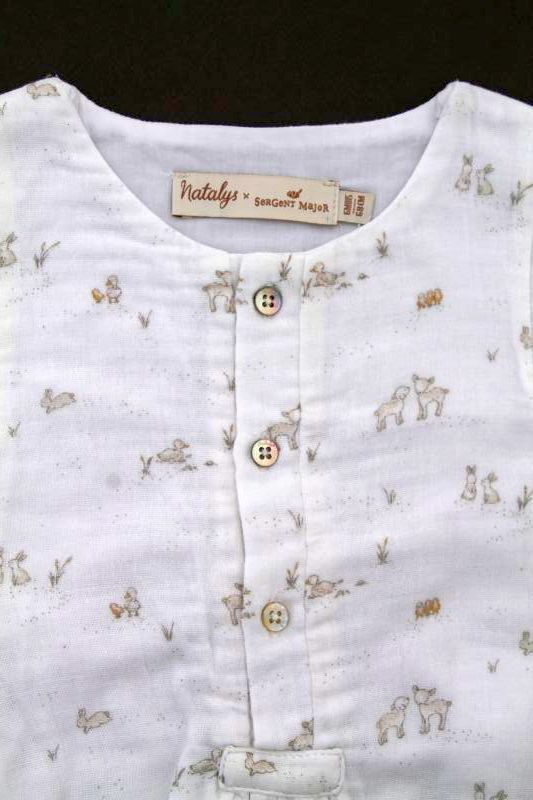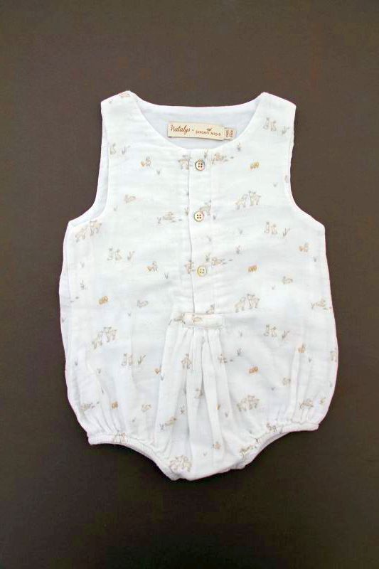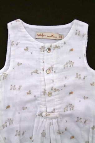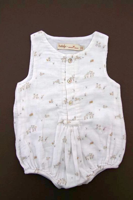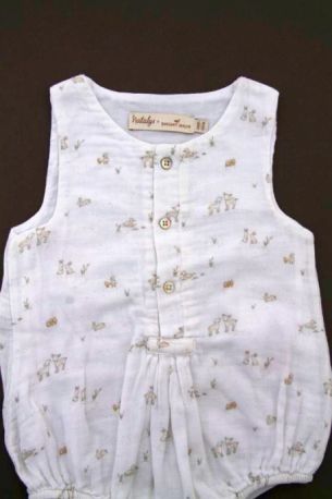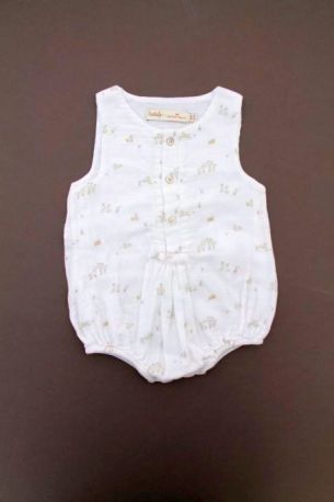 Combibloomer mixte en gaze de coton blanc, pour bébé 6 mois, léger pour l'été, avec 3 boutons sur la poitrine et 3 pressions à l'entrejambe pour faciliter l'habillage et le change...