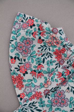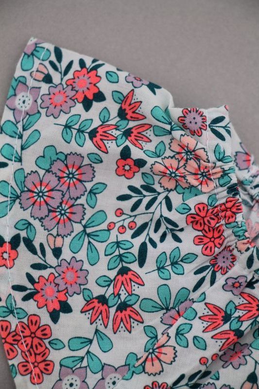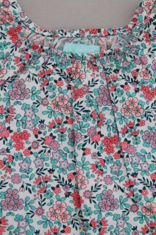 Ensemble 3 pièces en popeline de coton imprimé liberty rose, pour bébé fille 6 mois, très léger pour l'été, comprenant une tunique sans manches avec 4 boutons nacrés tout le long du dos, un...