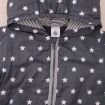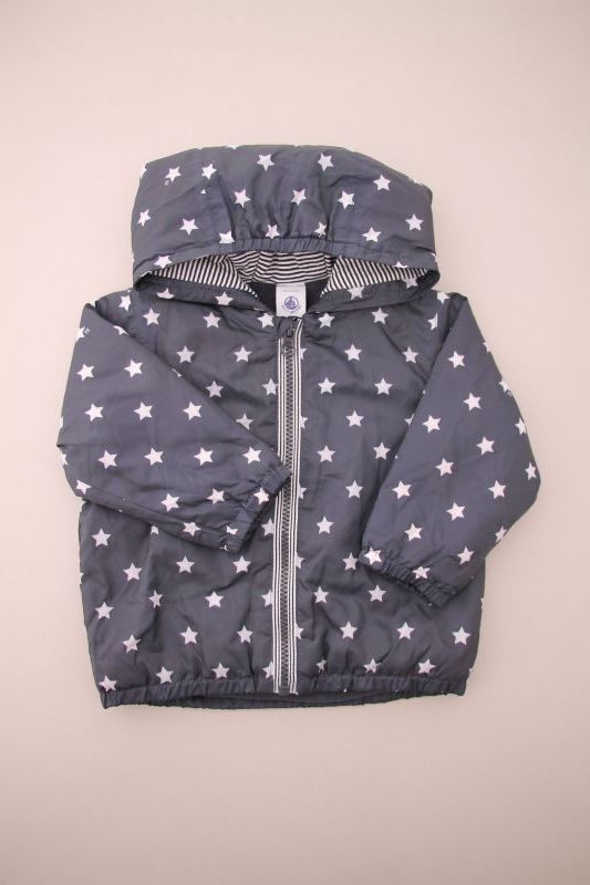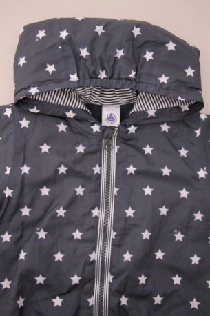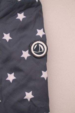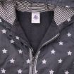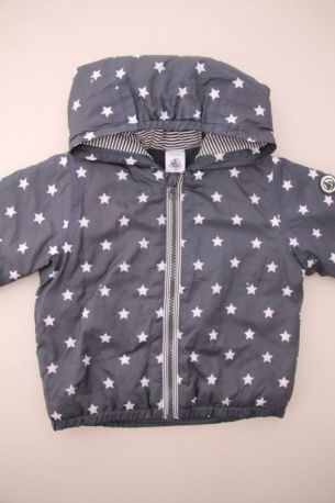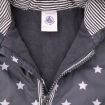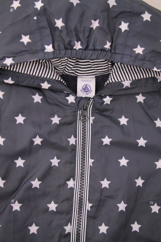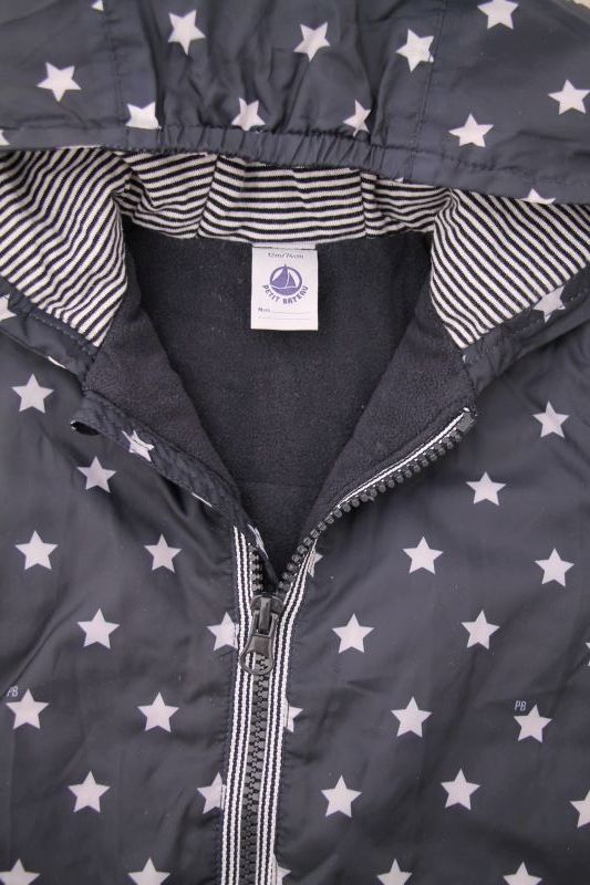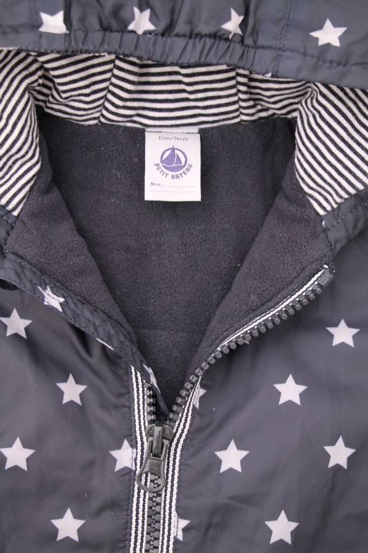 Gilet marinière en jersey blanc rayé bleu marine doublé polaire bleu ciel, pour bébé garçon 12 mois, chaud pour l'automne ou l'hiver, avec fermeture pressionnée devant.