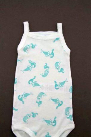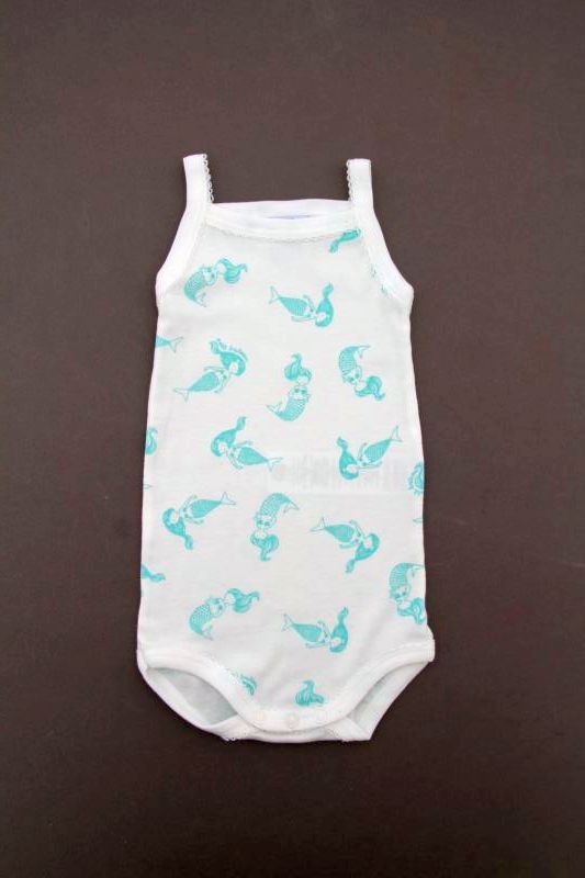 Body à bretelles blanc imprimé sirènes rose pâle, pour bébé fille 3 mois, indispensable pour l'été.