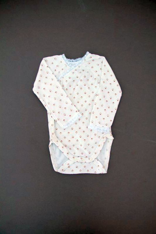 Body écru à dentelles à manches longues, pour bébé fille 3 mois, idéal pour la mi-saison, l'automne ou l'hiver, avec pressions croisées devant pour faciliter l'enfilage.