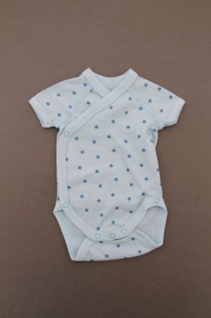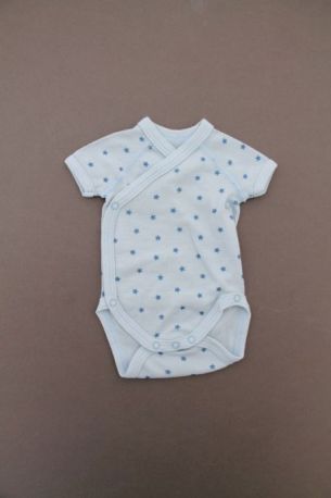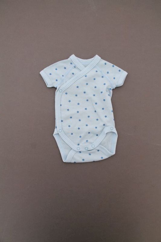Body en jersey doux milleraies bleu et blanc à manches courtes, pour bébé garçon prématuré (46 cm), indispensable pour la maternité pour un petit bébé d'été, avec pressions croisées...