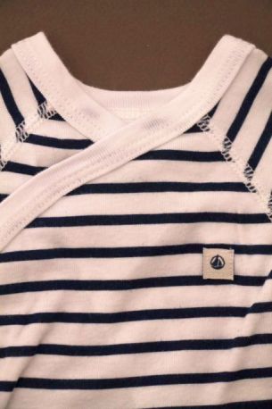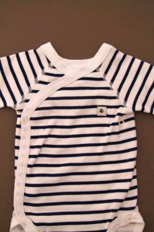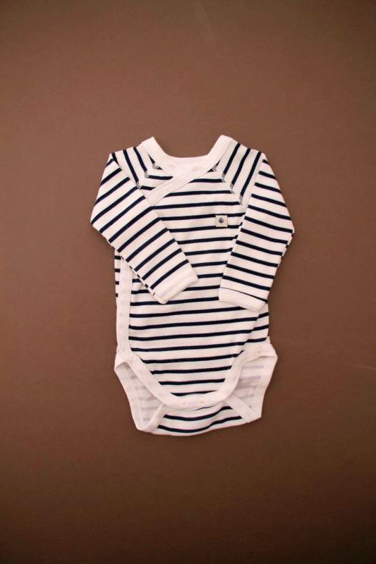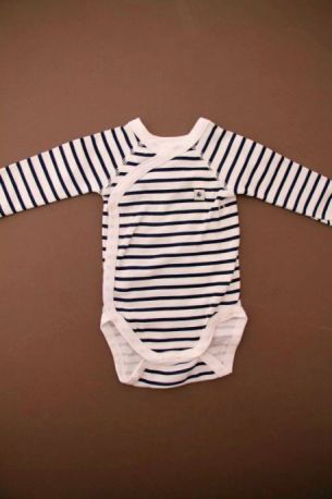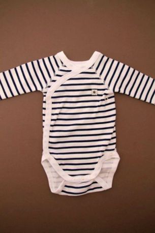 Body milleraies rayé bleu marine et blanc à manches longues, pour bébé garçon 1 mois, indispensable pour la maternité pour la mi-saison, l'automne ou l'hiver, avec pressions croisées devant...