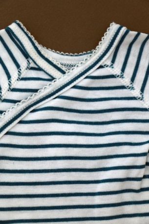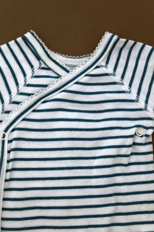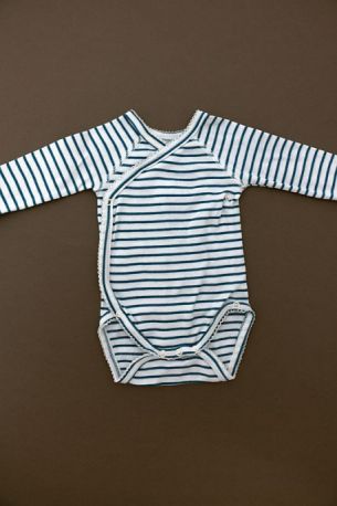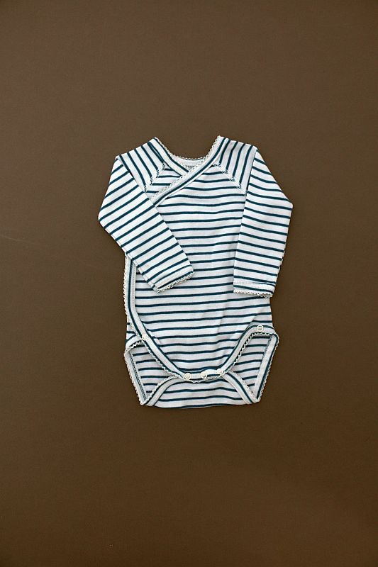 Body en jersey doux rayé rose pâle et blanc, pour bébé fille 1 mois, indispensable pour la maternité pour toutes les saisons, avec pressions croisées devant.