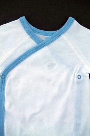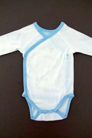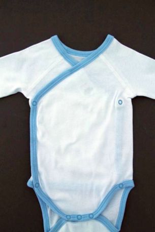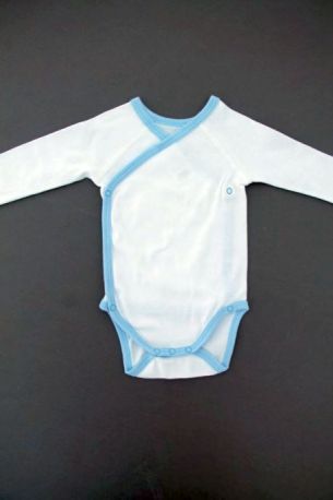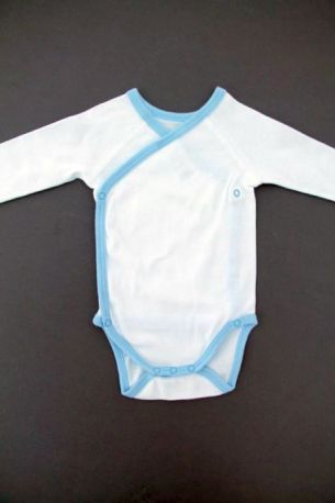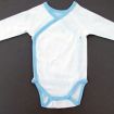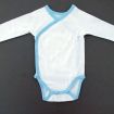 Body écru bord bleu avec 2 hiboux à manches longues, pour bébé garçon 3 mois, idéal pour l'automne, l'hiver ou la mi-saison, avec pressions croisées devant pour faciliter l'enfilage...