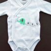 Dors-bien mixte en velours vert d'eau avec chat brodé, pour bébé prématuré, idéal dans la valise de la maternité pour un petit bébé, avec pressions devant et entre les jambes pour faciliter...