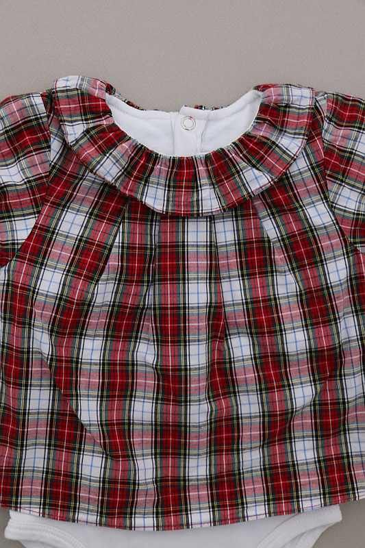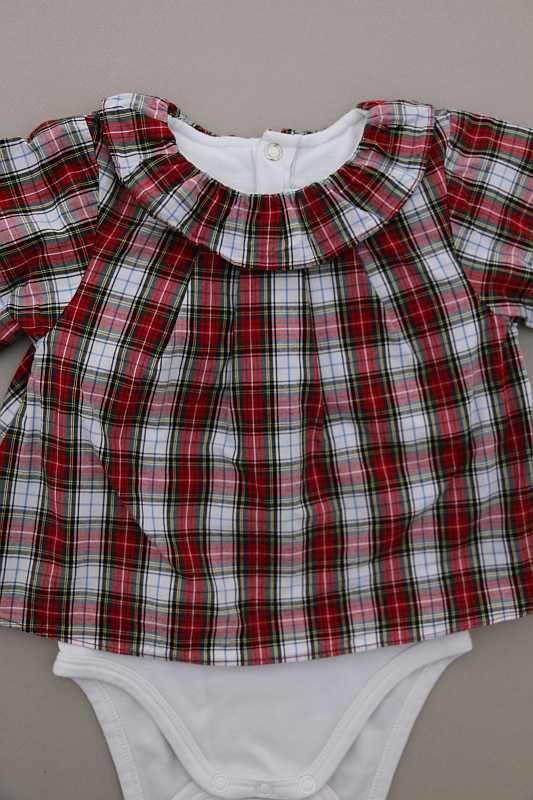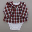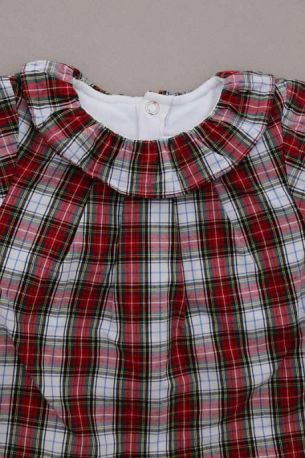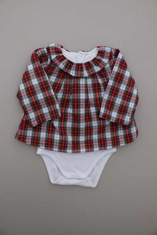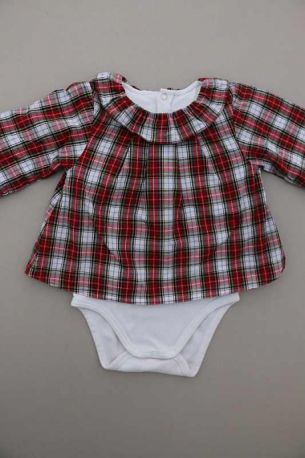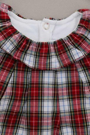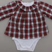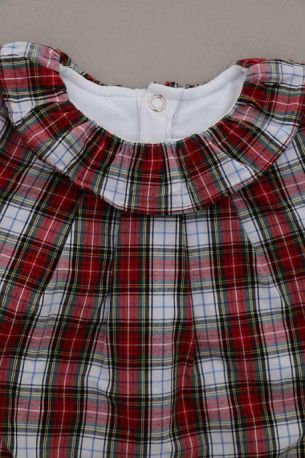 Robe en coton écossais marine et rouge avec culotte en jersey gris intégrée, pour bébé fille 6 mois, idéale pour la mi-saison, avec poignets élastiqués pour un bon maintien des manches et 3...