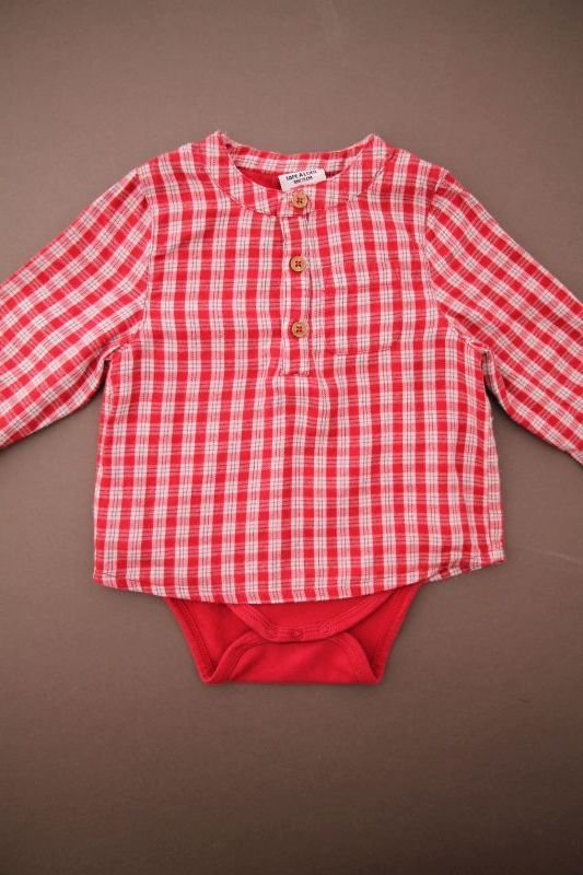 Chemise bucheron rouge et bleu marine, pour bébé garçon 6 à 12 mois, douce et chaude pour l'automne ou l'hiver.