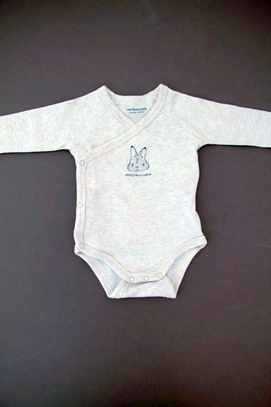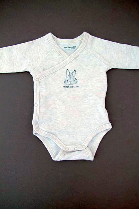 Body mixte blanc avec motif étoiles grises à manches longues, pour bébé 3 mois, indispensable pour la mi-saison, l'automne ou l'hiver, avec pressions croisées devant.