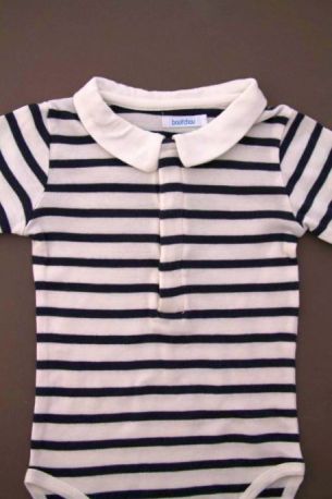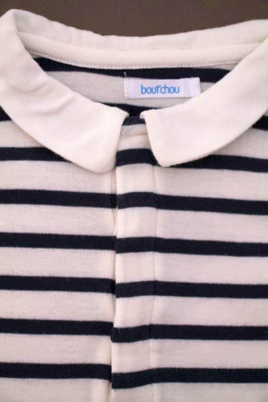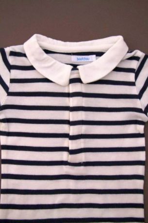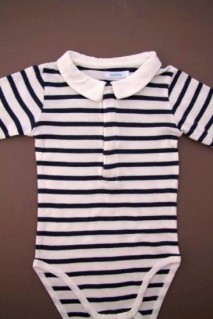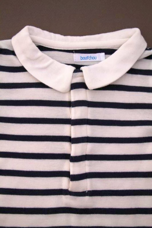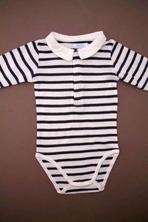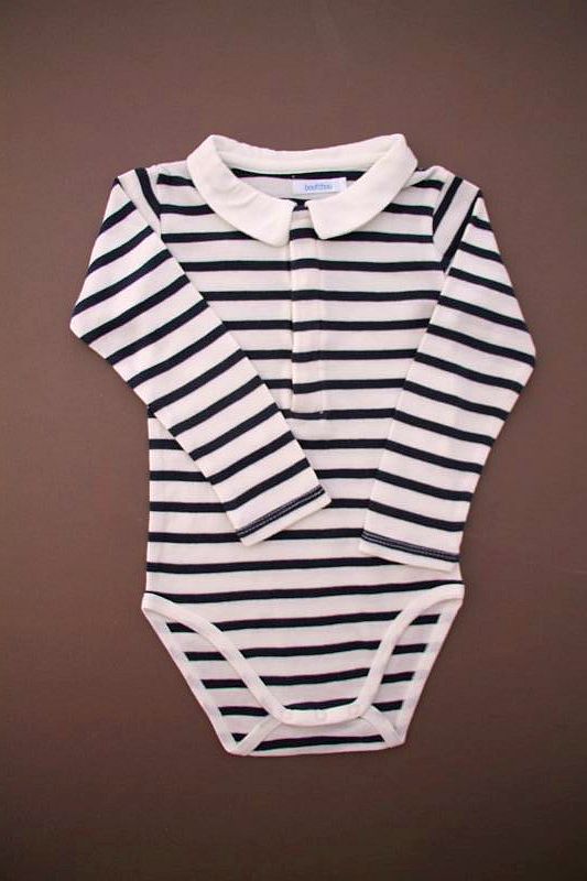 Body en jersey bleu marine foncé à manches longues, pour bébé garçon 18 mois, idéal pour l'automne ou l'hiver, avec col chemise en coton à carreaux marine et blanc, "J" rouge sérigraphié...
