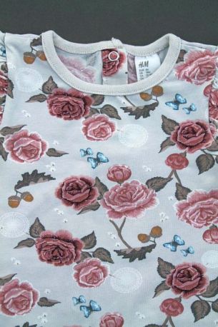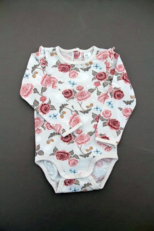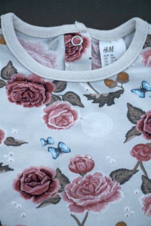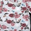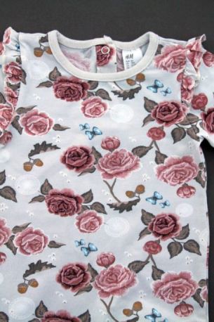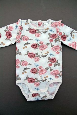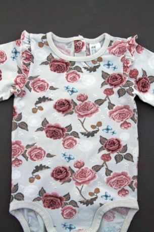 Pyjama en jersey doux ajouré rose poudré, pour bébé fille 18 mois, léger pour le printemps ou l'été, avec col claudine, volants et sous-pieds en gaze de coton blanc imprimé fleuri, chevilles...