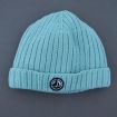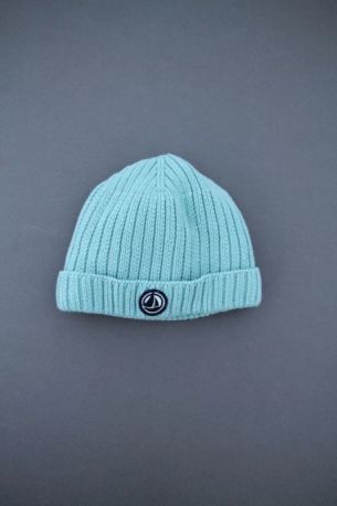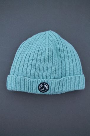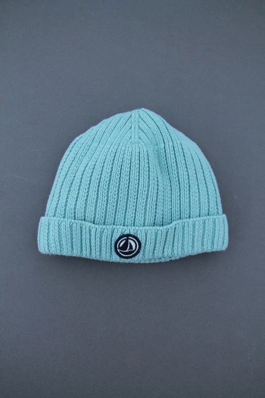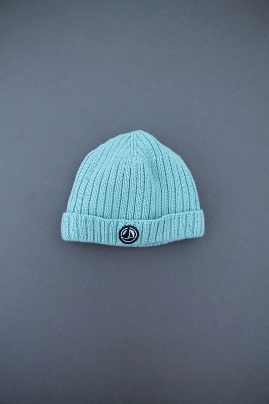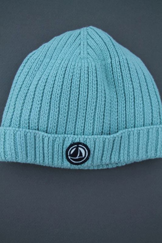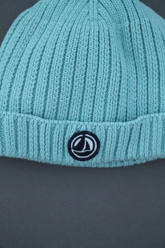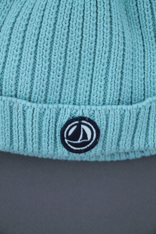 Bonnet à pompon mixte en tricot bleu marine foncé et gris clair, pour bébé 12 mois, très chaud pour l'automne ou l'hiver car entièrement doublé polaire.