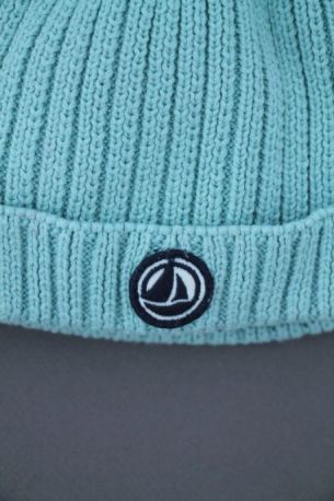 Bonnet avec pompon mixte en tricot doux gris anthracite, pour bébé 12 à 18 mois, très chaud pour l'hiver car entièrement doublé polaire toute douce.