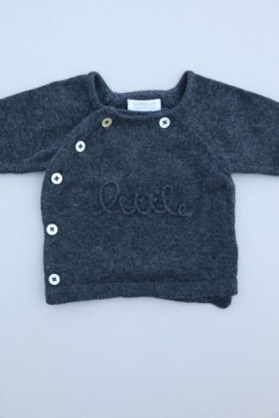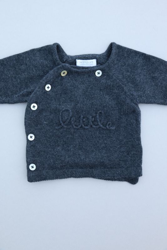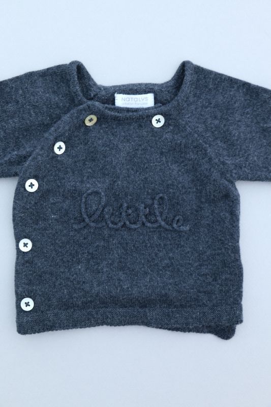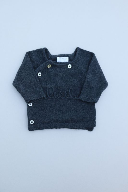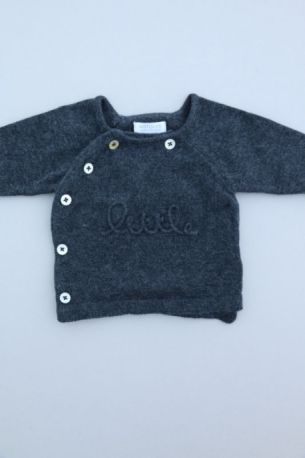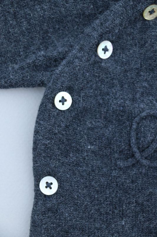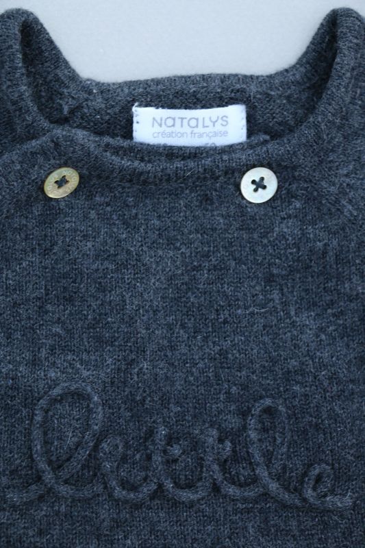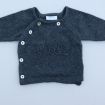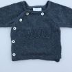 Combinaison longue mixte en tricot gris anthracite motif ours, pour bébé 1 à 3 mois (étiquette marquée 3 mois mais taille petit), doux et chaud pour l'hiver, avec 2 boutons sur l'épaule gauche...