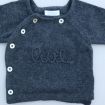 Salopette en velours doux et souple gris anthracite, pour bébé 1 mois, idéale pour l'automne ou l'hiver, entièrement doublée en jersey de coton rayé, avec bretelles boutonnées, un...