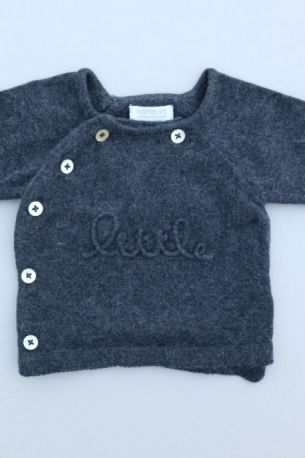Salopette mixte en flanelle gris anthracite, pour bébé 1 mois, idéale pour la mi-saison ou l'hiver car entièrement doublée en jersey de coton blanc, très souple et confortable, avec 2...