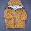Bonnet tigre en maille gris, camel et noir doublé, pour bébé garçon 6 à 9 mois, chaud pour l'automne ou l'hiver.