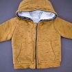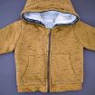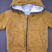 T-shirt en jersey fin gris clair chiné et jaune moutarde à manches longues, pour bébé garçon 6 mois, avec chien basset sérigraphié et 2 boutons-pression dans le dos pour faciliter l'habillage...
