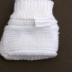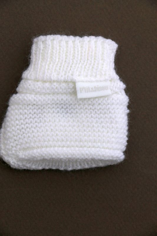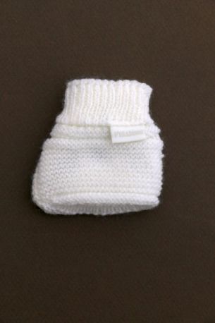 Brassière mixte en maille blanche tricotée en France, pour bébé 0 à 1 mois, chaude pour la maternité, avec fermeture croisée par un bouton et un cordon.