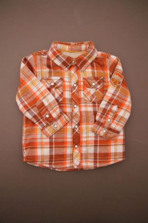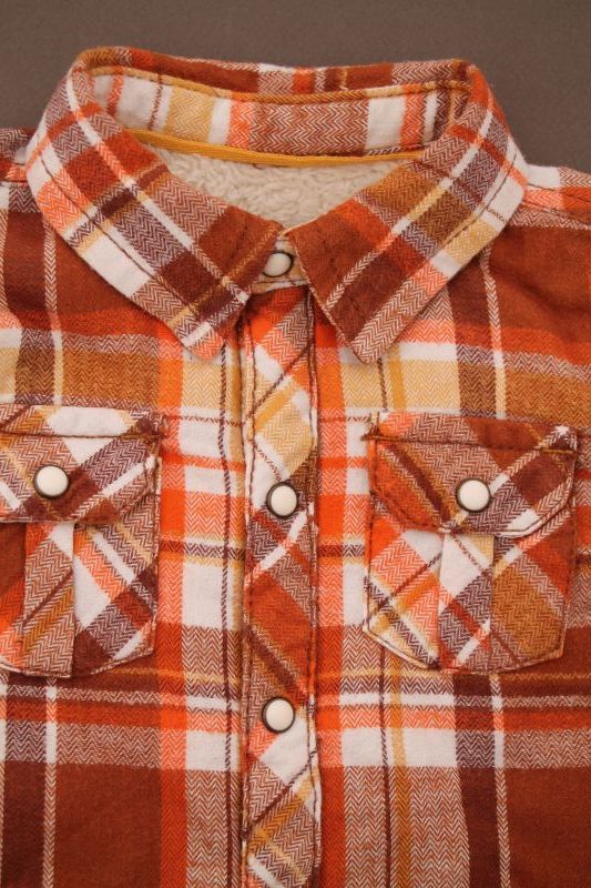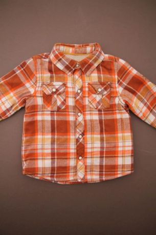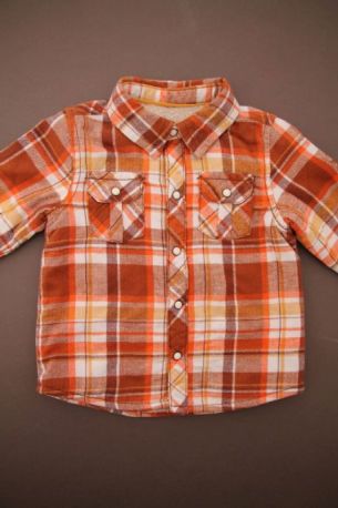 Chemise bucheron marine, bleu, blanc et jaune, pour bébé garçon 9 à 12 mois, douce et chaude pour l'automne ou l'hiver, avec fermeture par 5 boutons.