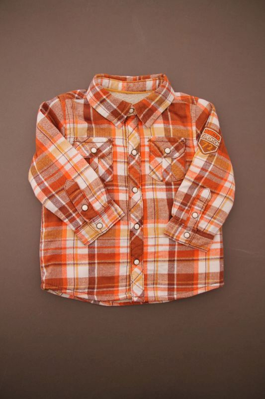 Chemise bucheron rouge et bleu marine, pour bébé garçon 6 à 12 mois, douce et chaude pour l'automne ou l'hiver.