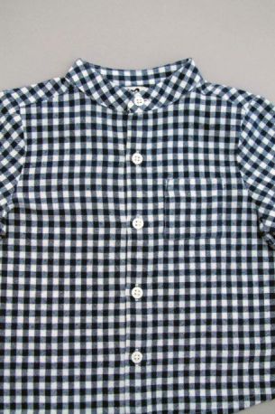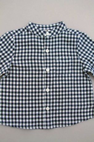 Body en jersey bleu marine foncé à manches longues, pour bébé garçon 18 mois, idéal pour l'automne ou l'hiver, avec col chemise en coton à carreaux marine et blanc, "J" rouge sérigraphié...
