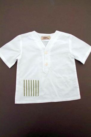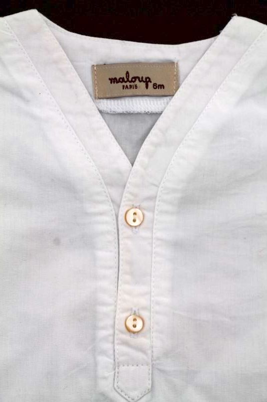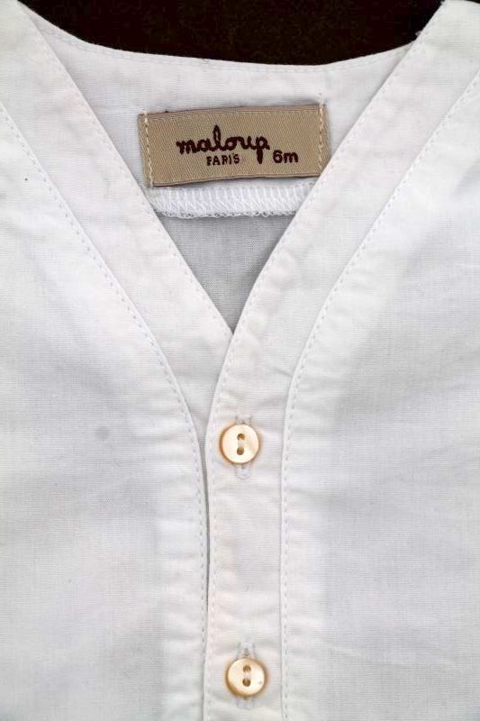 Salopette courte habillée blanche brodée rayures beige, pour bébé garçon 6 mois, très légère pour l'été, idéale pour un mariage ou un baptême, avec boutons-pression aux bretelles, de...