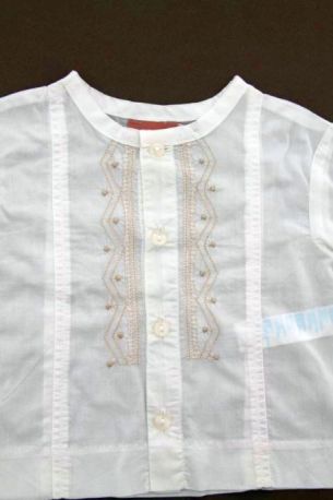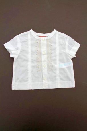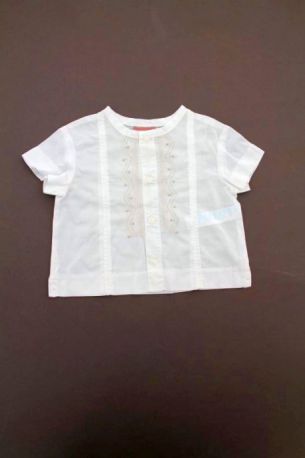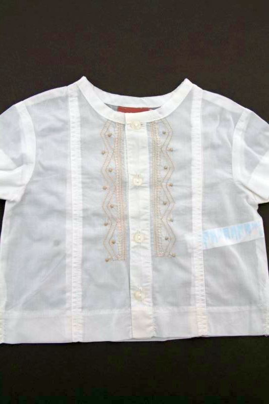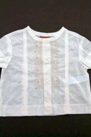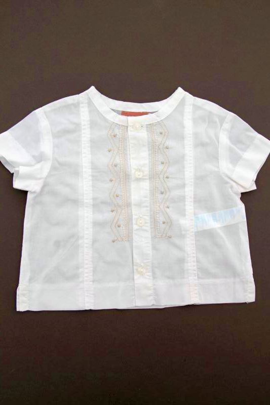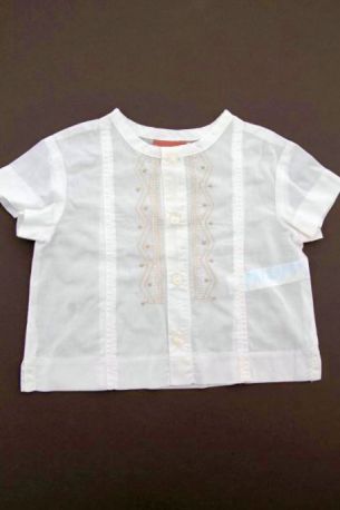 Chemise col Mao blanche habillée à manches courtes, pour bébé garçon 3 mois, idéale pour un baptème ou une cérémonie au printemps ou l'été, avec fermeture par 5 boutons nacrés...