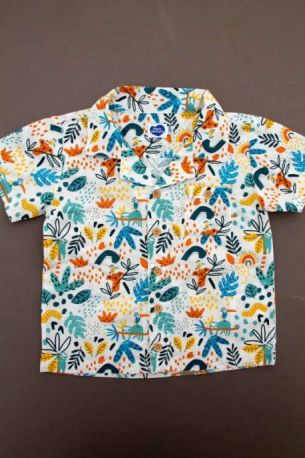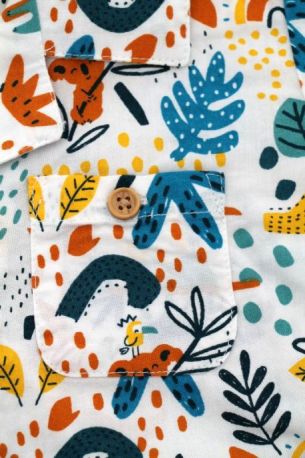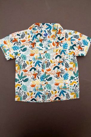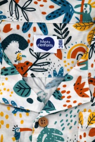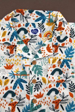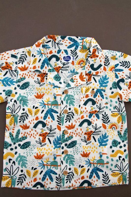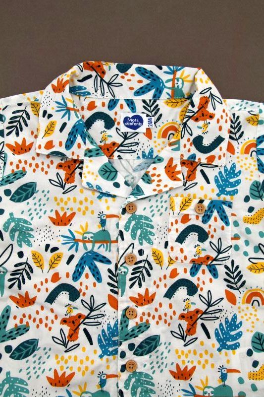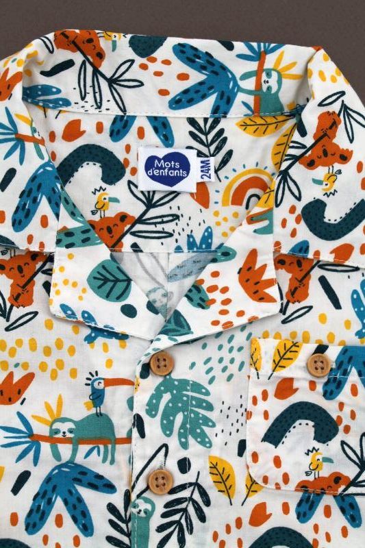 Chemise en chambray imprimé à manches courtes, pour bébé garçon 18 à 24 mois, légère pour le printemps ou l'été.