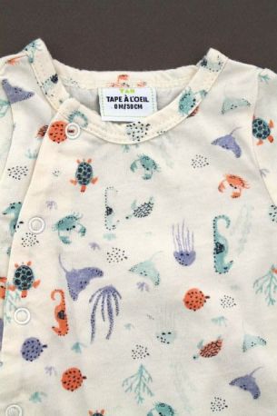 Combicourt doux léger Tape à l'oeil Toutes les autres Marques Combinaison short en jersey doux écru imprimé animaux des mers et océans, pour bébé garçon naissance, léger pour un bébé d'été, avec pressions devant et à l'entrejambe pour faciliter l'habillage et le change. Composition : 100% coton. Lavage à 30°. Longueur épaule - sous la couche : 29 cm. Occasion en excellent état, comme neuf (valeur neuf : 12,99 €). Taille En stock Expédié en 24/48h Quantité AJOUTER AU PANIER BébéMarques vous conseille également Combicourt doux léger Tape à l'oeil Combinaison short en jersey doux blanc imprimé bateaux rayé jaune ocre et bleu marine, pour bébé garçon naissance, léger pour un bébé d'été, avec pressions devant et à l'entrejambe pour... 4.90 € Naissance Votre article a bien été ajouté au panier Quantité : × Partager et faites découvrir cet article par mail Vous souhaitez faire connaître ce produit à vos ami(e)s ?Inscrivez simplement leurs noms, prénoms, e-mails et votre message d'accompagnement.Ils pourront ainsi venir directement sur la page que vous avez sélectionnée. Nom(s) et/ou prénom(s) de vos ami(e)s E-mail de vos ami(e)s Votre nom et/ou prénom Votre E-mail Votre message d'accompagnement (1000 caractères maximum) : Nombre de caractères restants : Ne remplissez pas cette case