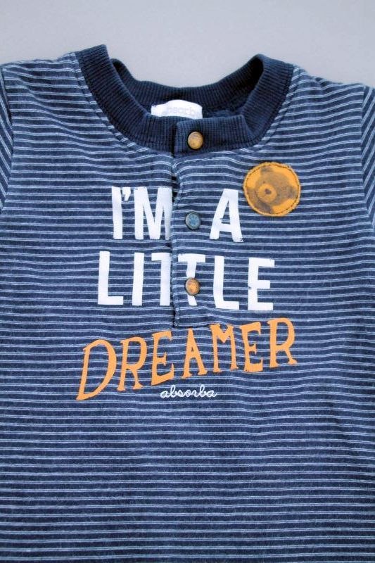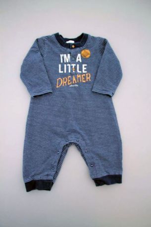 Combinaison longue bi-matières, pour bébé garçon 6 mois, chaud pour l'automne ou l'hiver, comprenant une salopette en denim gris anthracite accrochée à un haut molletonné rayé coloré, avec...