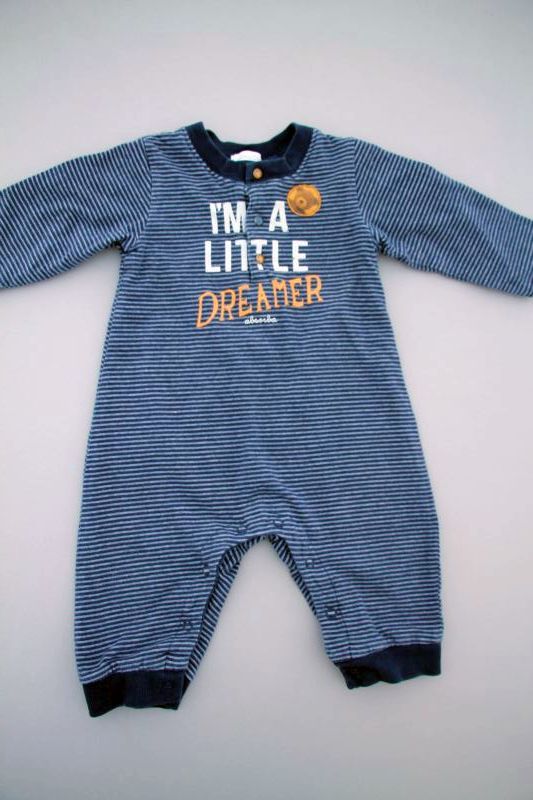 Combinaison longue en tricot gris anthracite bord vert, pour bébé garçon 3 à 6 mois (étiquette marquée 3 mois mais taille grand), chaude et très douce pour l'hiver, avec 2 boutons nacrés de...