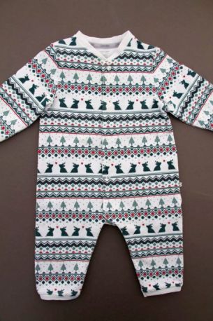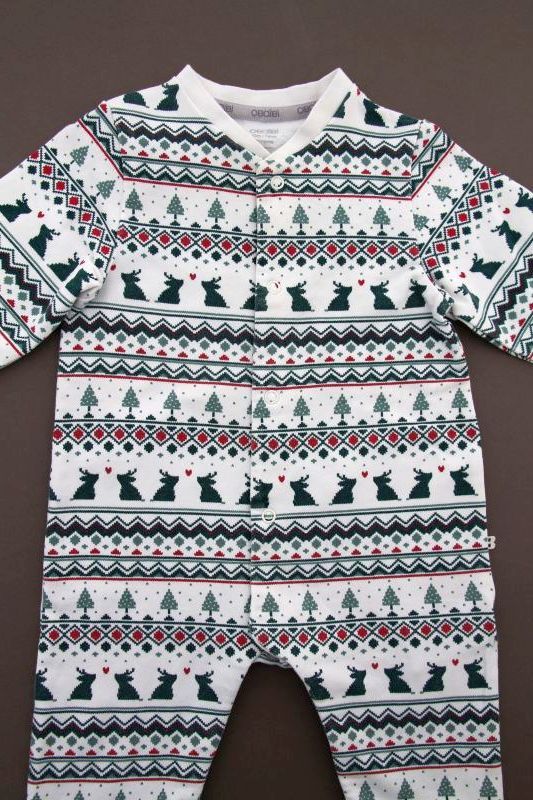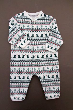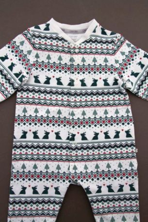 Pyjama sans pieds de Noël mixte en jersey écru imprimé, pour bébé 12 à 18 mois, idéal pour les fêtes de fin d'année, très confortable à porter, avec pressions devant et entre les jambes...