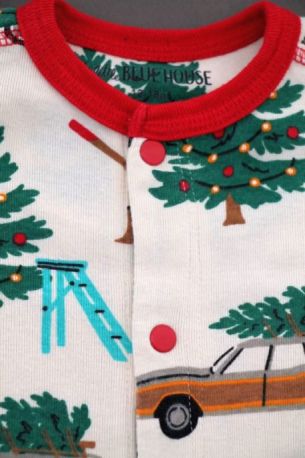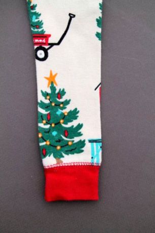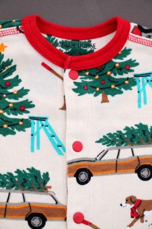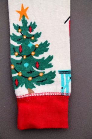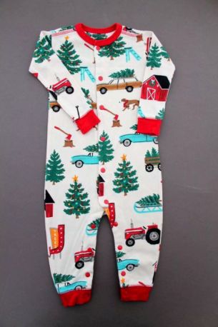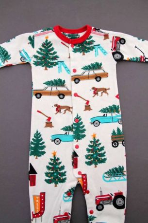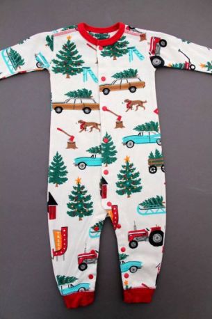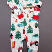 Pyjama sans pieds mixte stretch écru imprimé vert sapin et rouge, pour bébé 12 mois, idéal pour les fêtes de fin d'année, souple et confortable à porter, avec pressions devant et entre les...