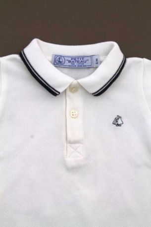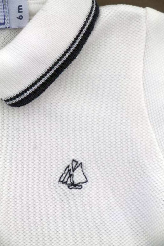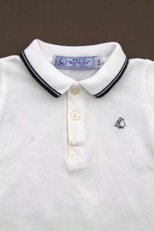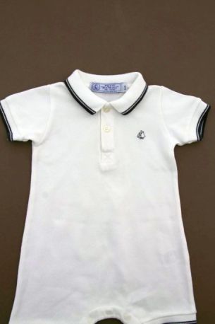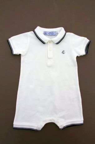 Combishort en coton piqué bleu marine à col polo rayé blanc, pour bébé garçon 6 mois, confortable à porter, avec 2 boutons sur la poitrine et 5 pressions entre les jambes pour faciliter...