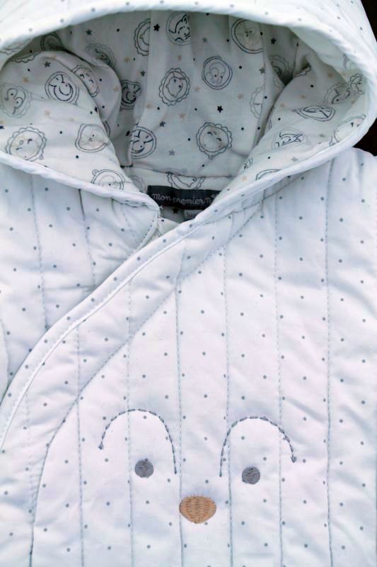 Veste à capuche mixte doublée en maille gris clair, pour bébé 0 à 1 mois, chaude pour la mi-saison ou l'hiver, avec fermeture par 4 boutons.