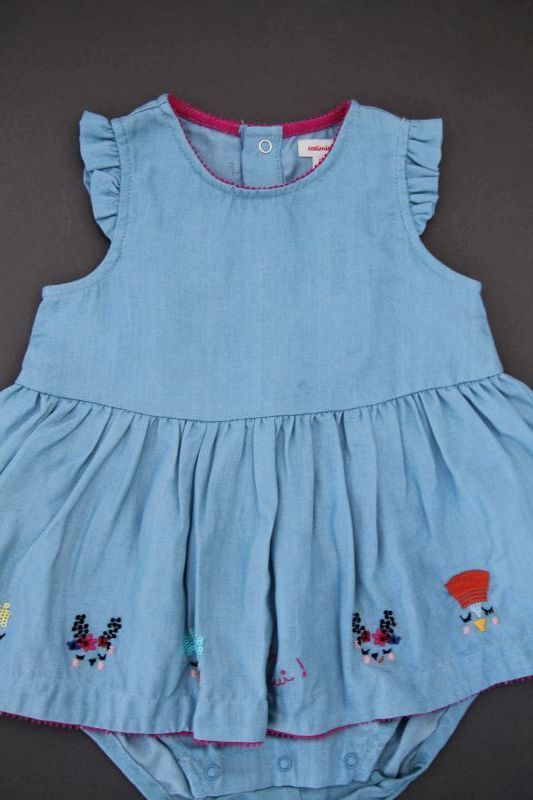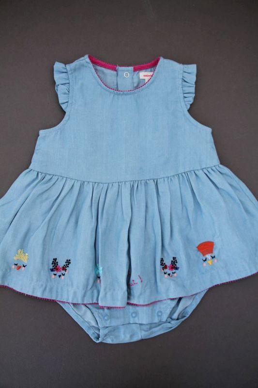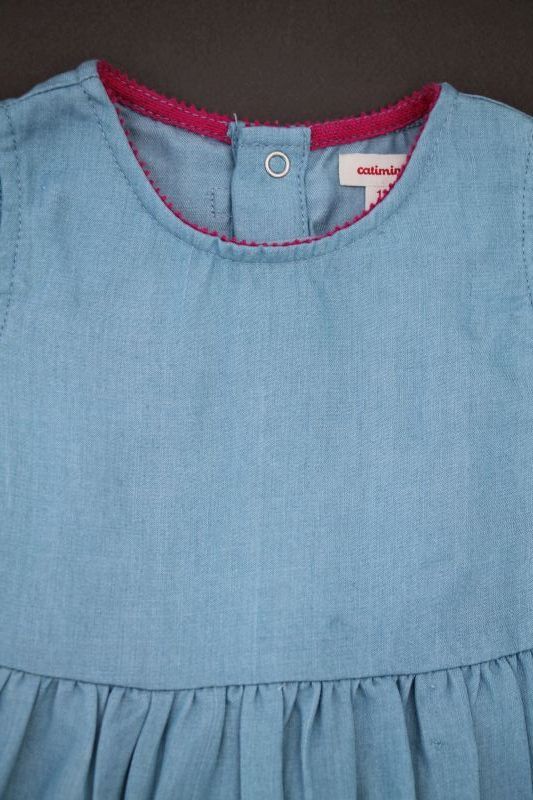 Robe sans manches en coton bleu jean, pour bébé fille 12 mois, légère pour le printemps ou l'été, avec 4 boutons devant pour faciliter l'enfilage.