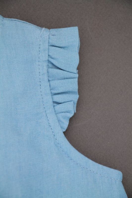 Robe sans manches en popeline vichy bleu, pour bébé 12 mois, très légère pour l'été, avec culotte bloomer assortie pour maintenir la couche et 5 boutons nacrés tout le long du dos pour...