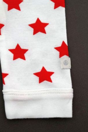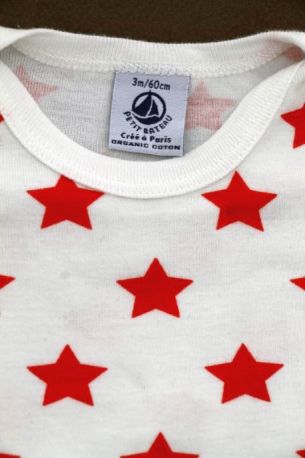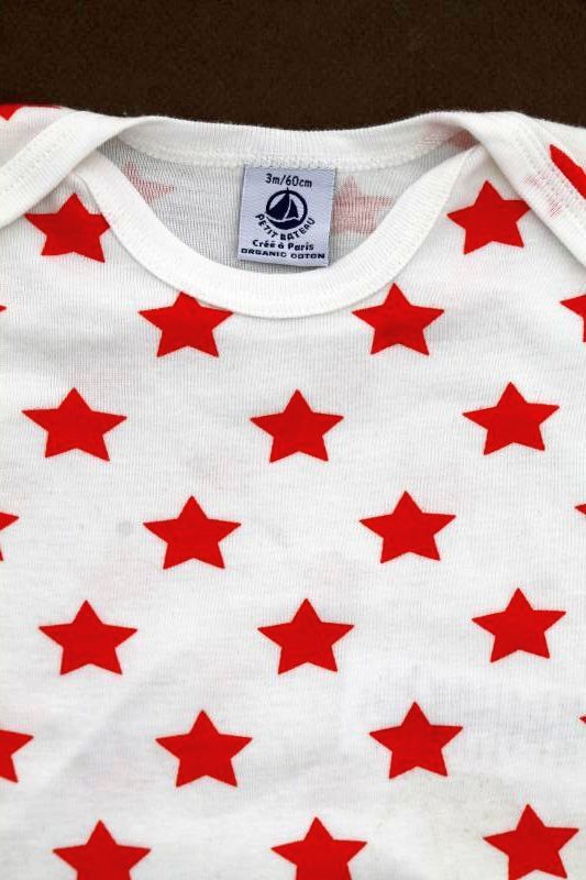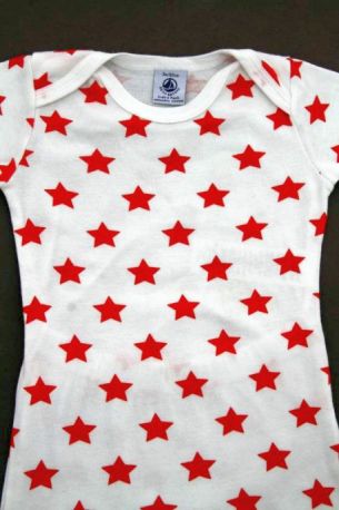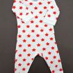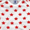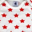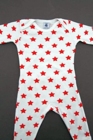 Dors-bien écru rayé rouge bord marine, pour bébé garçon 3 mois, léger pour l'été en jersey fin, avec broderies et sérigraphies sur la poitrine, chevilles élastiquées pour un bon maintien...