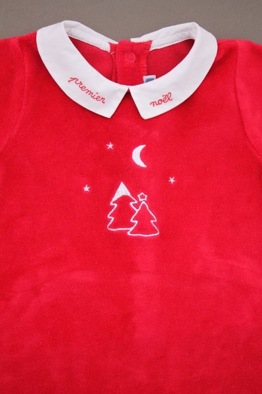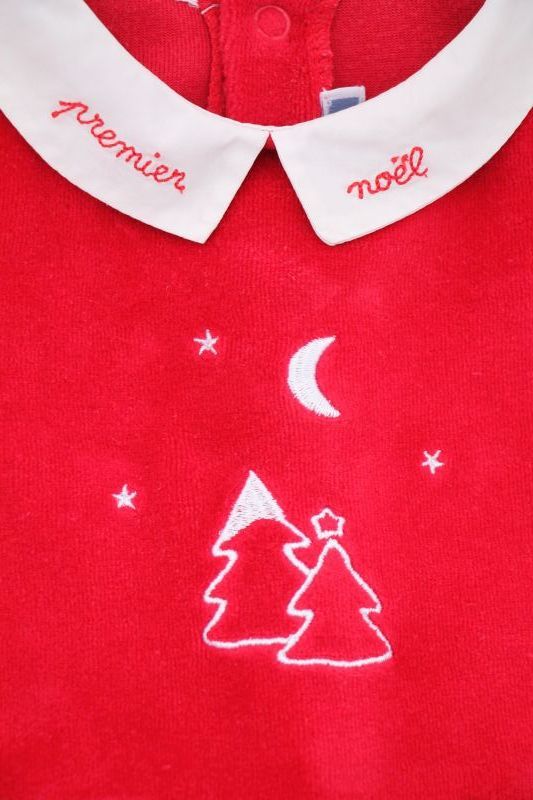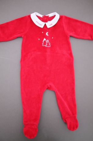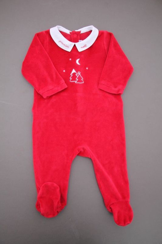Dors-bien mixte de Noël en velours très doux rouge, pour bébé 12 mois, chaud pour les fêtes de fin d'année cet hiver : Noël et Nouvel An, avec têtes d'animaux sérigraphiées et cadeaux...