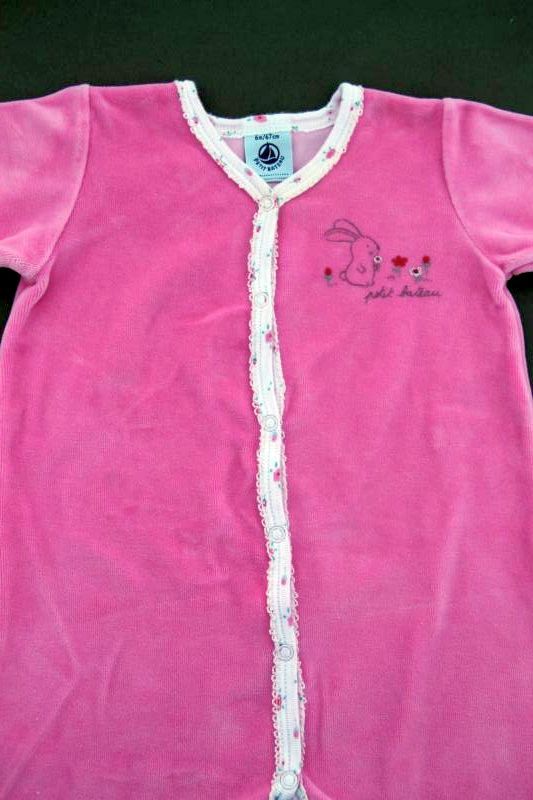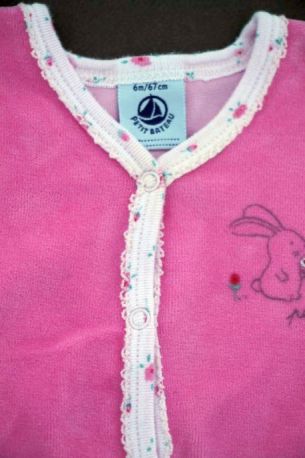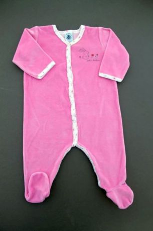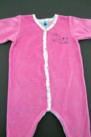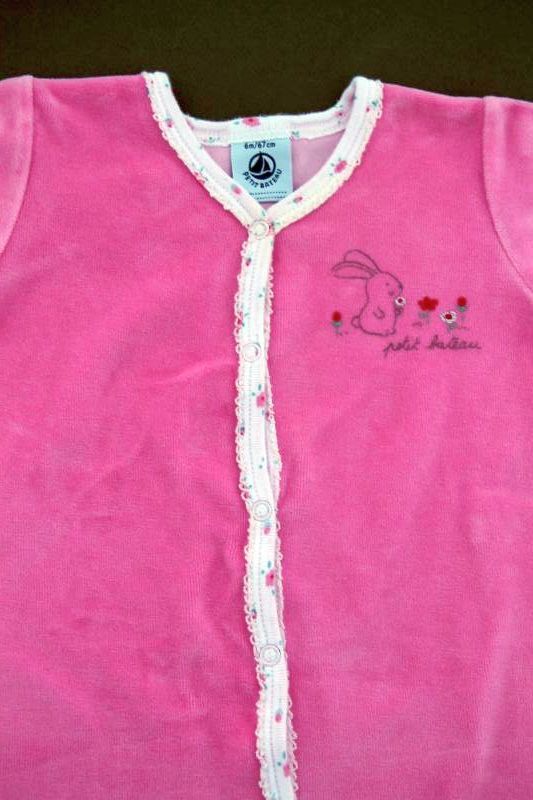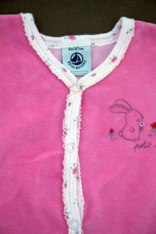 Pyjama en velours rose avec blouse imprimée fleurie accrochée, pour bébé fille 6 mois, chaud pour la mi-saison ou l'hiver, avec pressions tout le long du dos et entre les jambes pour faciliter...