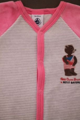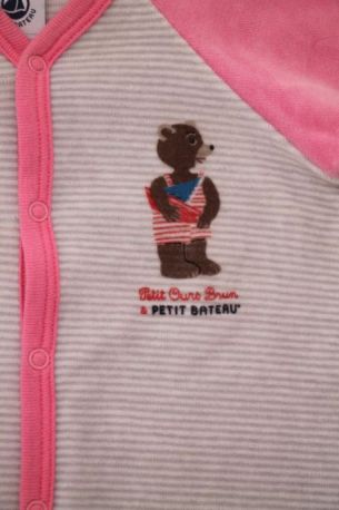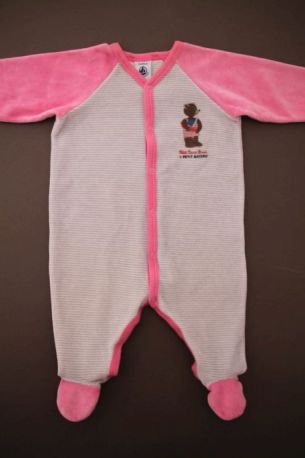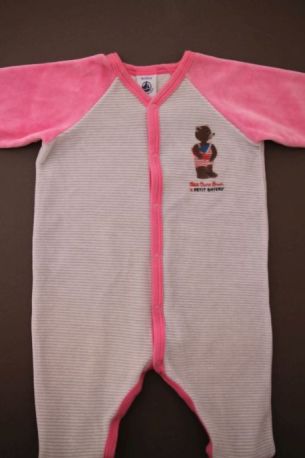 Pyjama en velours doux Petit Bateau Dors-bien en velours doux rose, pour bébé fille 3 mois, chaud pour l'hiver ou la mi-saison, avec chat sérigraphié sur la poitrine et pressions au dos. Composition : 80% coton, 20% polyester. ... 8.90 € 3 mois
