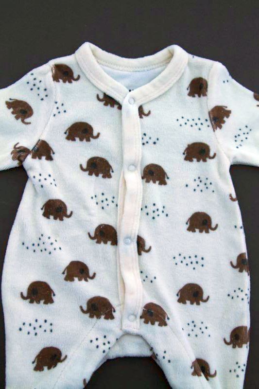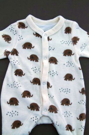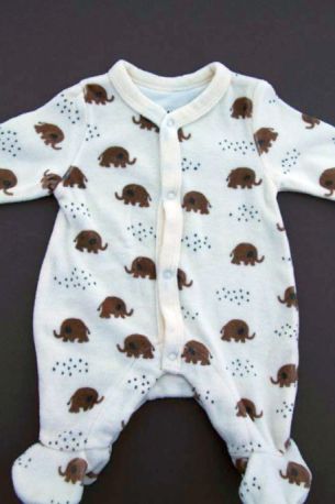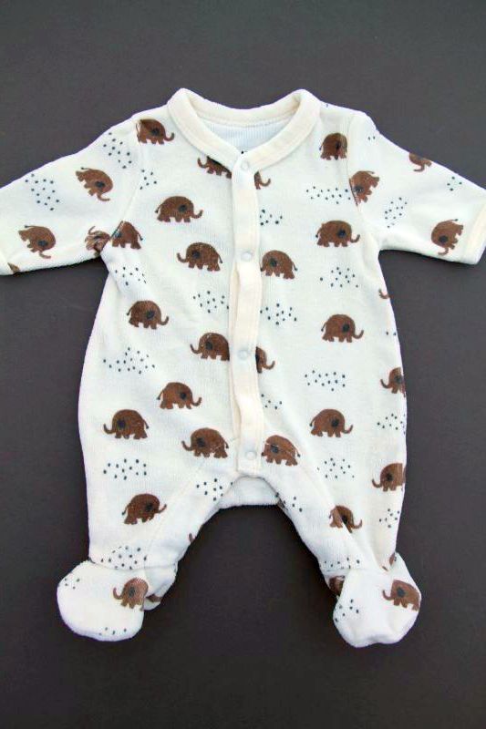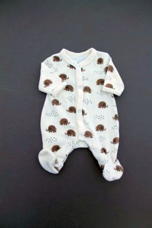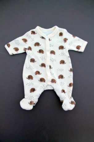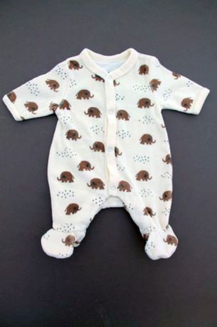 Pyjama mixte en velours taupe, pour bébé prématuré, chaud pour un petit bébé à la maternité pour toutes les saisons, avec nuages brodés sur la poitrine et pressions devant sur le côté...