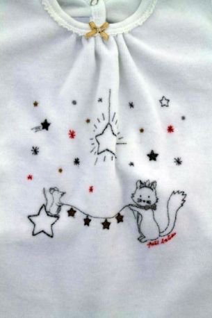 Chemise habillée blanche à col claudine brodé rouge, pour bébé fille 3 mois, idéal pour Noël, avec 4 boutons devant pour faciliter l'enfilage.