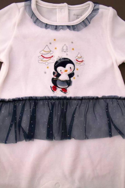 Dors-bien velours Noël Sergent Major Sergent Major Pyjama de Noël en velours doux blanc avec tulle bleu marine et argenté, pour bébé fille 6 mois, chaud pour les fêtes de fin d'année, avec broderie sur la poitrine, chevilles élastiquées pour un bon maintien des pieds, pressions au dos et à l'entrejambe pour faciliter le change. Composition : 76% coton, 24% polyester. Lavage à 30°. Longueur épaule - pied : 53 cm. Occasion en excellent état, comme neuf (valeur neuf : 23,99 €) Taille En stock Expédié en 24/48h Quantité AJOUTER AU PANIER Votre article a bien été ajouté au panier Quantité : × Partager et faites découvrir cet article par mail Vous souhaitez faire connaître ce produit à vos ami(e)s ?Inscrivez simplement leurs noms, prénoms, e-mails et votre message d'accompagnement.Ils pourront ainsi venir directement sur la page que vous avez sélectionnée. Nom(s) et/ou prénom(s) de vos ami(e)s E-mail de vos ami(e)s Votre nom et/ou prénom Votre E-mail Votre message d'accompagnement (1000 caractères maximum) : Nombre de caractères restants : Ne remplissez pas cette case