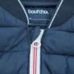 Blouson matelassé réversible, pour bébé garçon 12 mois, avec un côté marine uni et un côté rayé marine et rouge brique, capuche doublée polaire amovible et 2 poches devant avec fermeture...