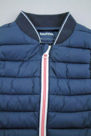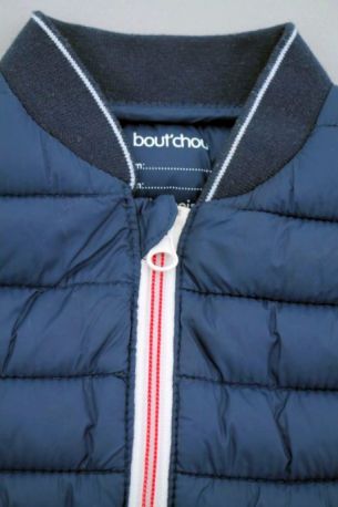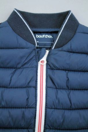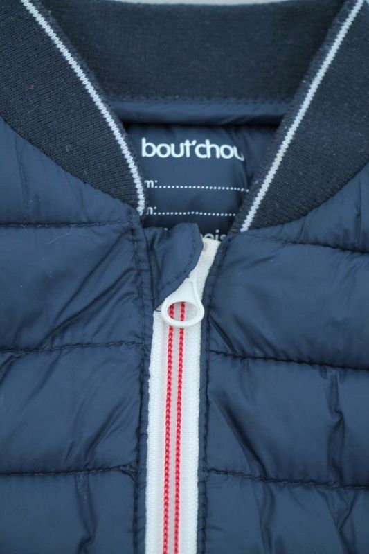 Doudoune matelassée bleu marine foncé, pour bébé garçon 12 mois, très chaude pour l'hiver, souple et confortable à porter, avec 2 poches devant et fermeture zippée.