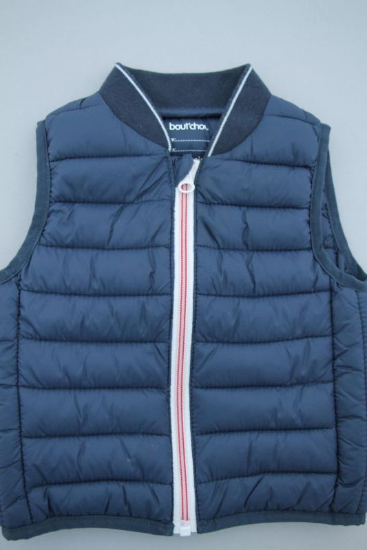 Doudoune sans manches matelassé réversible bleu marine et rouge bordeaux écossais, pour bébé garçon 12 mois, imperméable et déperlant, chaude pour l'automne ou l'hiver, avec fermeture...
