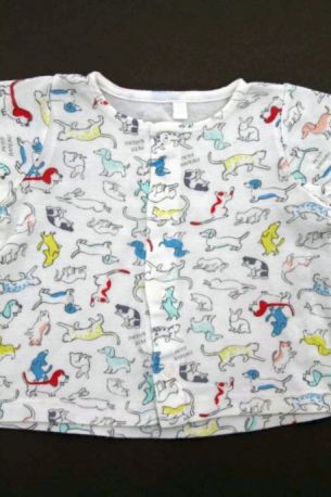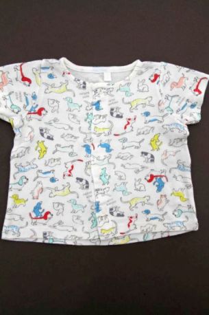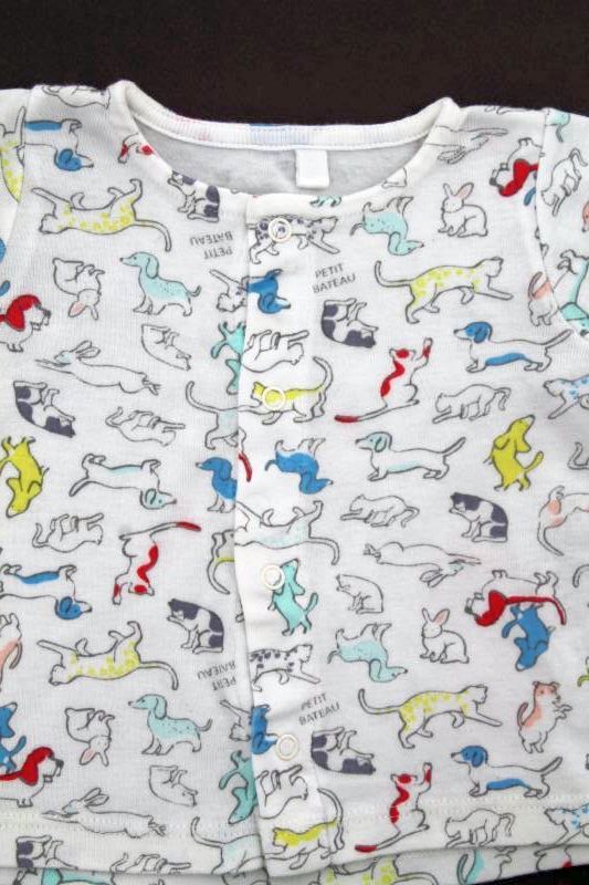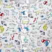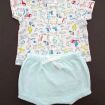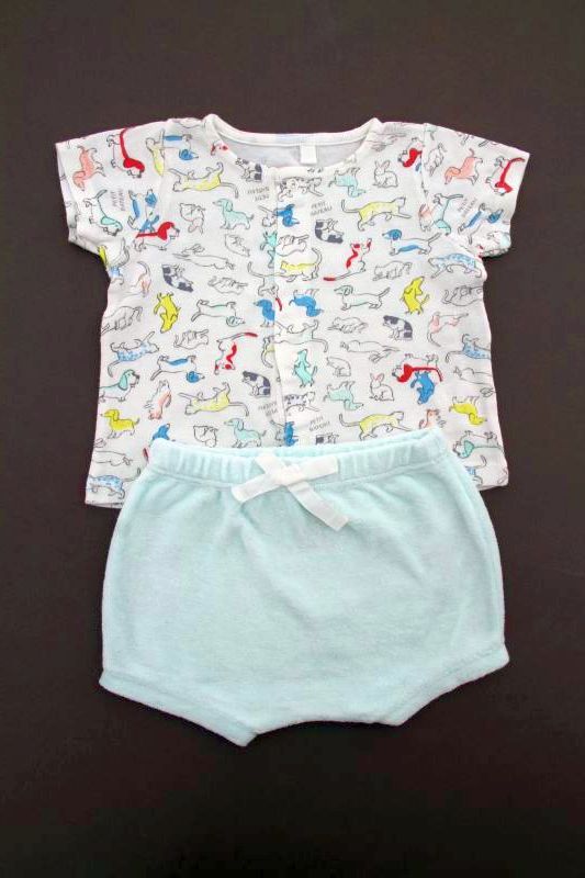 Combishort à manches courtes, pour bébé garçon 3 mois, léger pour l'été, avec haut en jersey fin blanc sérigraphié avec pressions au dos et bas en coton milleraies bleu marine avec 3...